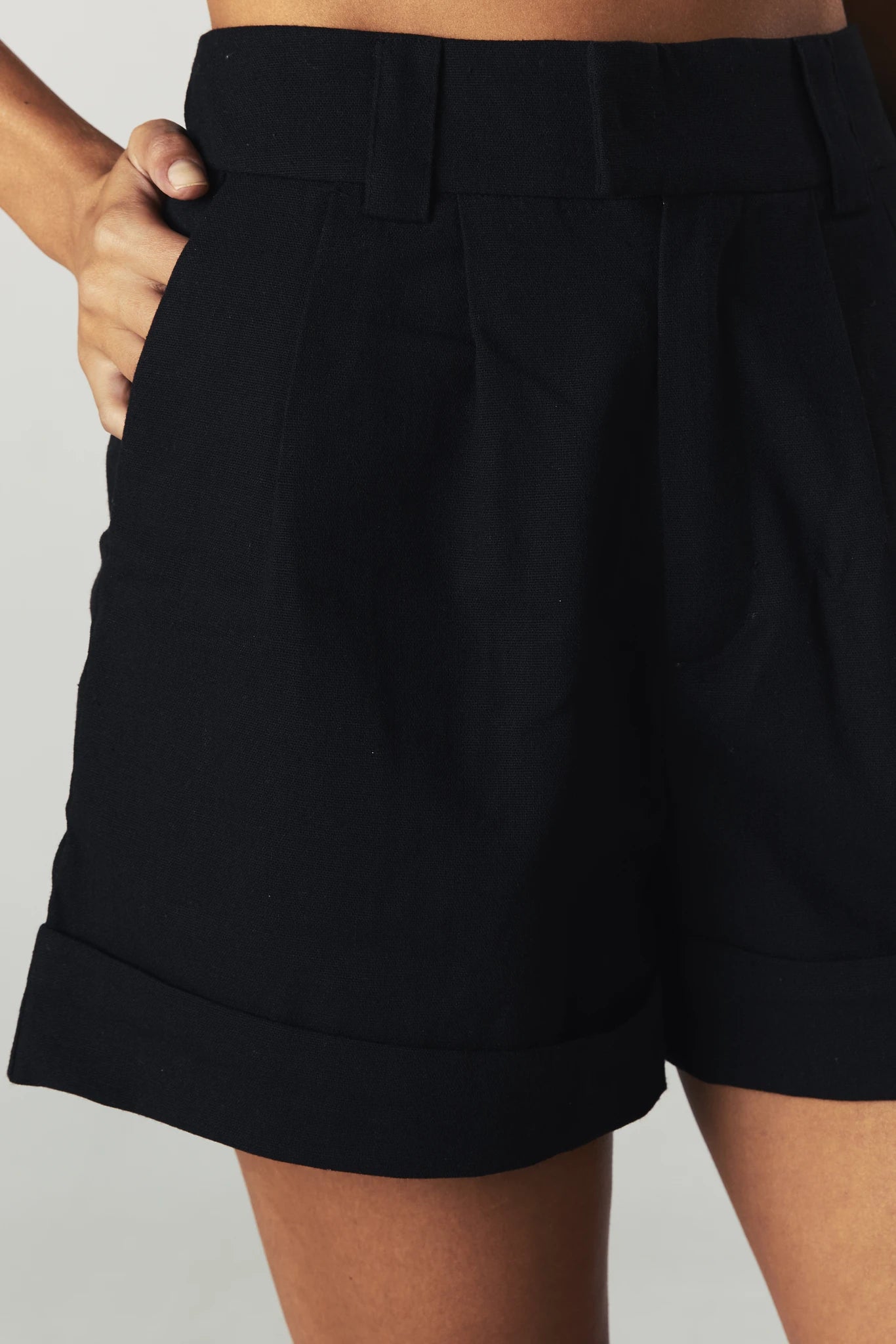 • Short de alfaiataria em linho misto, com modelagem tipo bermuda e barra italiana.