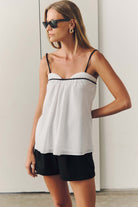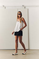 - Bata com modelagem ampla confeccionada em cambraia de algodão, com zíper nas costas e detalhe em cordão de algodão encapado.