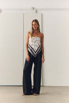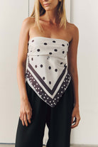 - Lenço com estampa poá preto e branco, medidas: 90x130cm.