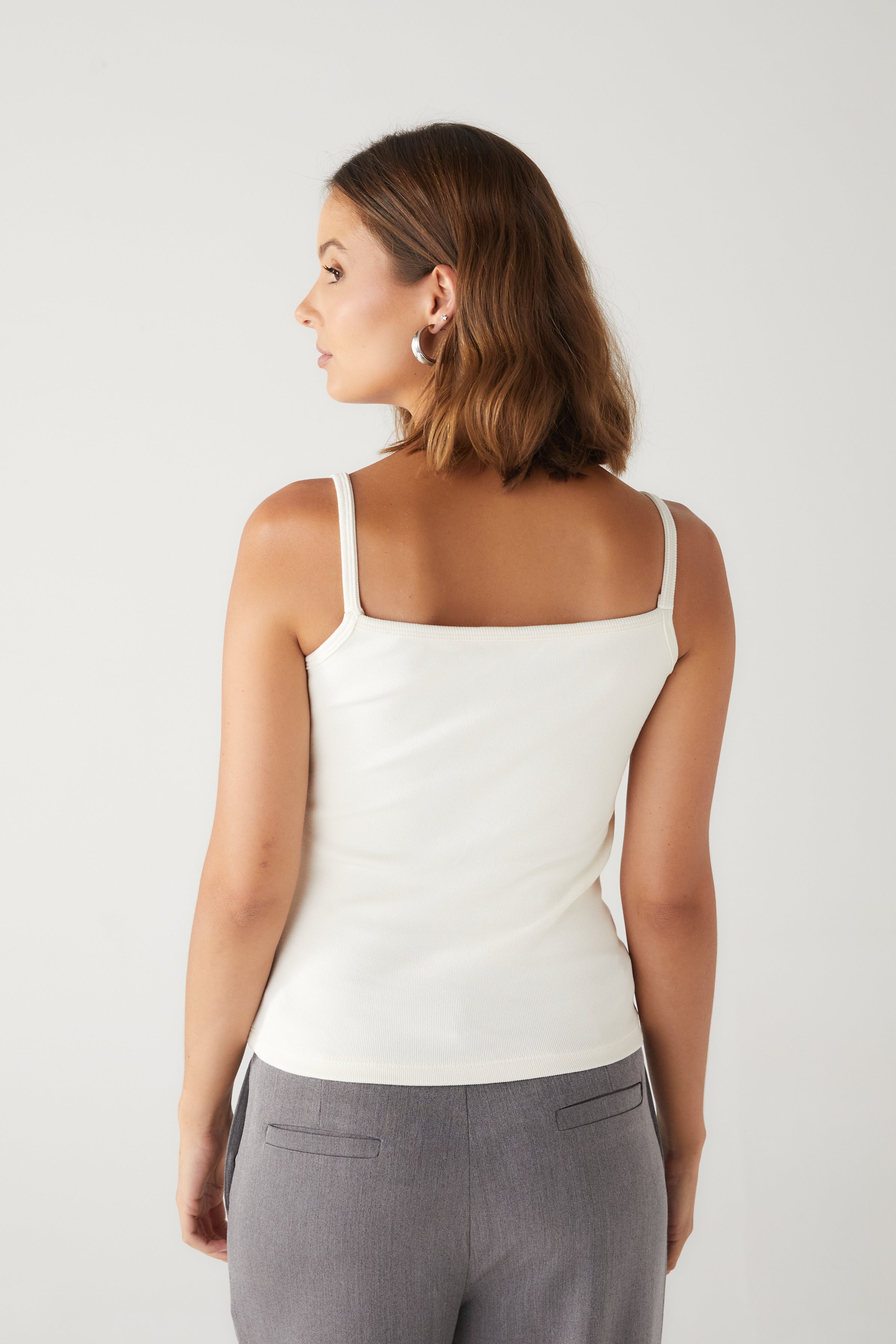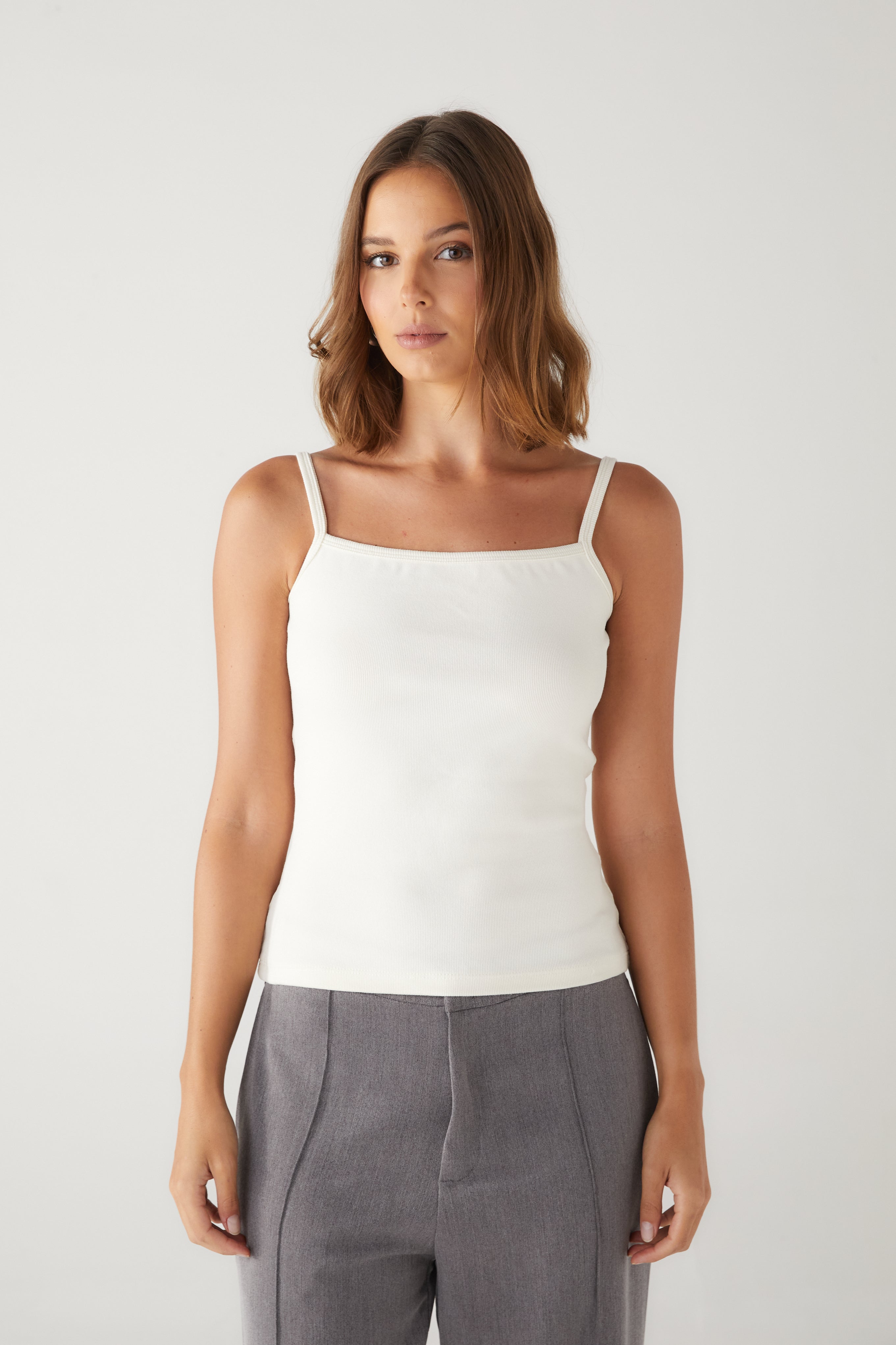 • Regata em malha canelada de gramatura maior promovendo maior sustentação e modelando o corpo.
