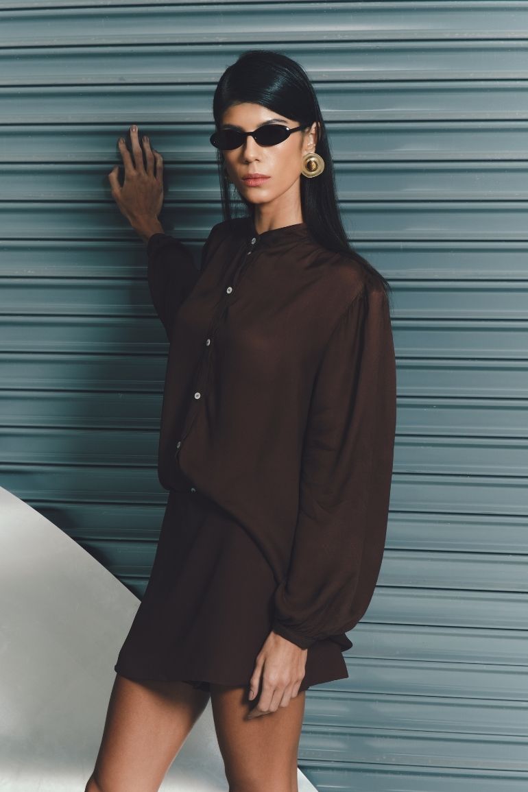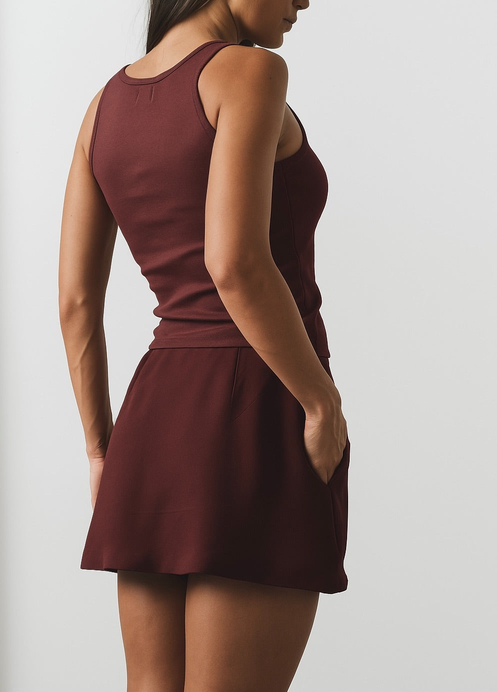• Short saia amber é a mesma modelagem do short saia julie, mas dessa vez confeccionado em crepe de alfaiataria, com costuras embutidas, bolso faca e zíper invisível na lateral.